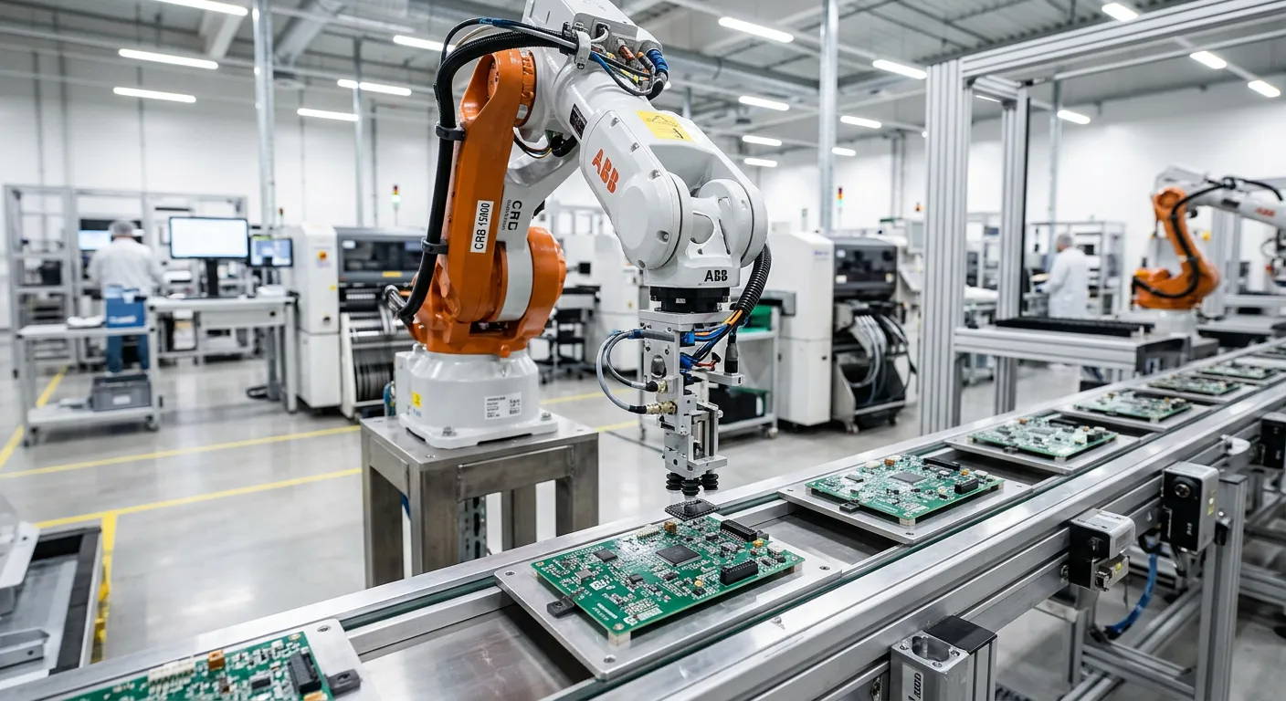 Smart factory integration with robotic RFID labeling on conveyors and assembly lines.